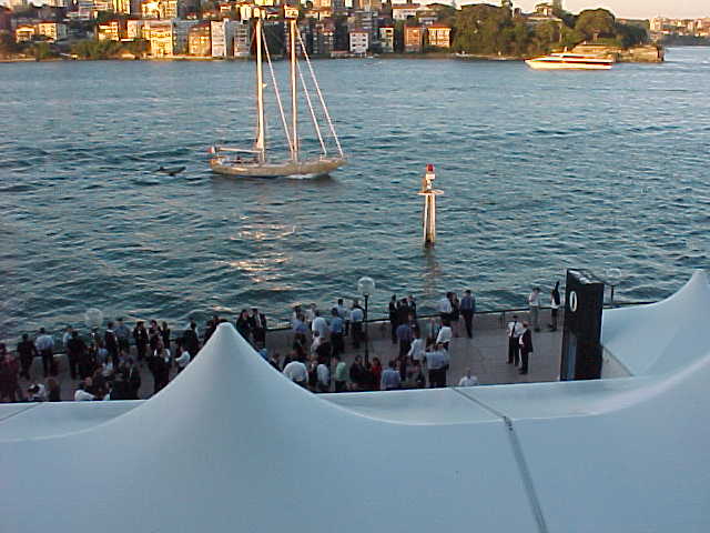 オペラハウスベランダから海を眺める。