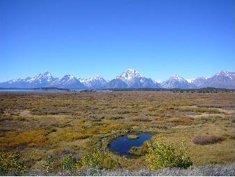IEEE DSP workshopが 開催されたGrand Teton National Park(Wyoming, USA)のジャクソンレイクロッジからの眺め(2006/9/24-27) |